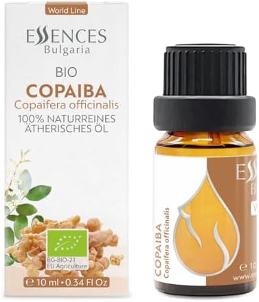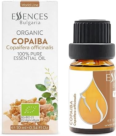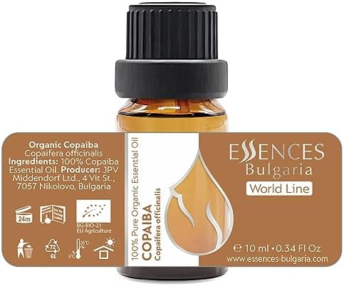 Essences Bulgaria Aceite Esencial de Copaiba Orgánico 10ml | Copaifera officinalis | 100% Puro y Natural | Sin diluir | Grado Terapéutico | Aromaterapia | Cosméticos | Libre de crueldad | Sin OGM